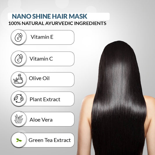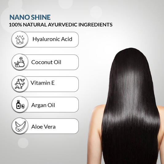 Nano Shine is a deep hydration treatment that infuses essential nutrients into the hair, enhancing its natural shine and softness. It works by sealing moisture within the strands, preventing dryness, and giving your hair a glossy, salon-finished look.
