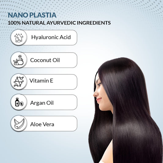 Nano Plastia is an advanced hair restoration and straightening treatment that deeply nourishes and smooths hair while eliminating frizz. It strengthens hair strands, making them shinier, healthier, and more manageable without harsh chemicals.